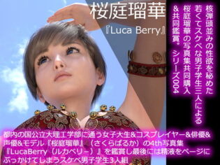【FANZAエロ同人キャンペーン特集】 d_174440 【50●□】都内の国公立大理工学部に通う女子大生&コスプレイヤー&俳優&声優&モデル『桜庭瑠華』(さくらばるか)の4th写真集『LucaBerry(ルカベリー)』を鑑賞し最後にはページに精液をぶっかけてしまうスケベ男子学生3人組