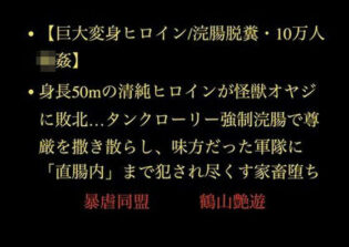 SM 【FANZAエロ同人キャンペーン特集】 d_708322 【巨大変身ヒロイン/浣腸脱糞/10万人輪●】身長50mの清純ヒロインが怪獣オヤジに敗北…タンクローリー強●浣腸で尊厳を撒き散らし、味方だった軍隊に「直腸内」まで犯●れ尽くす家畜堕ち